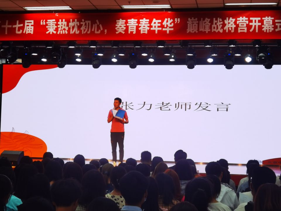 2021年5月23日18时,世界杯官网第十七届巅峰战将营开幕式在良乡校区学生活动中心四层报告厅圆满举行。张力老师,学生社团联合会主席团成员,第十七届巅峰战将营学员以及相关组织人员共同参与本次开幕式。
