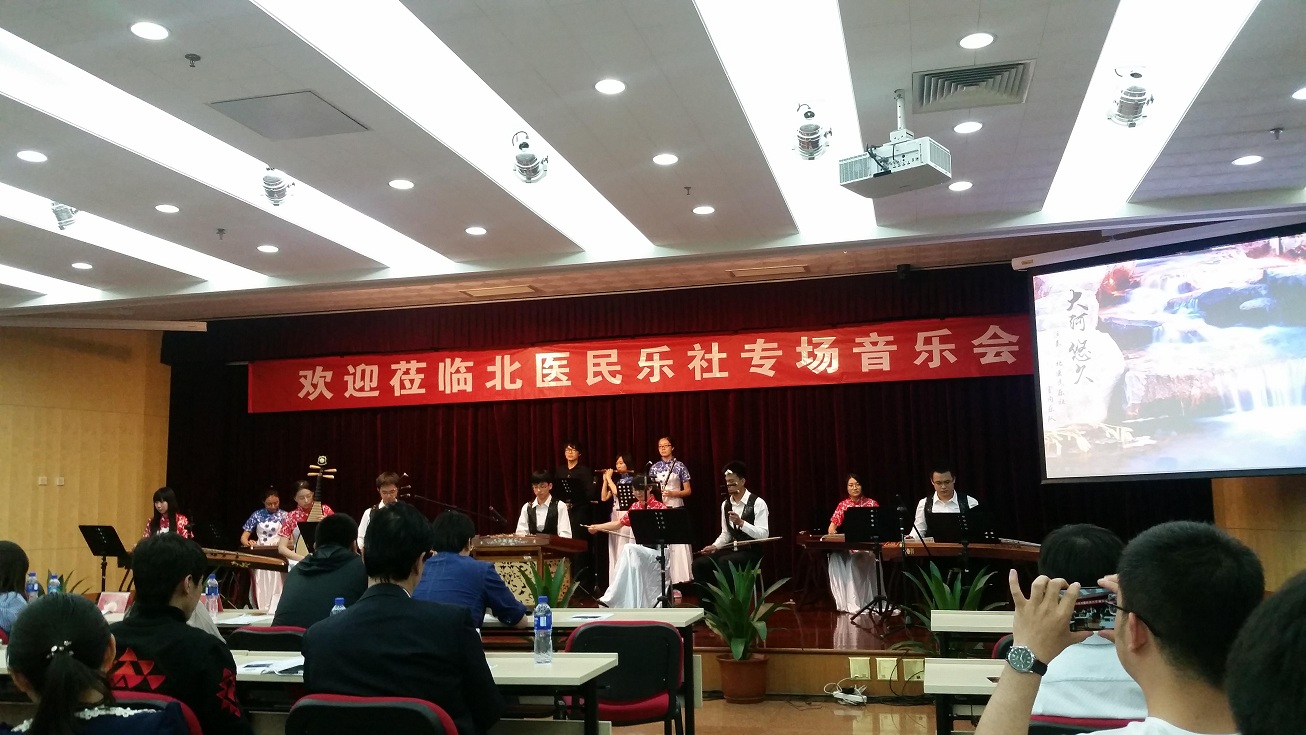 本场音乐会由北医乐社主办,联合了共青团北京大学医学部委员会、中国大学生国乐联谊会、中国农业大学群曦笛箫社、中国地质大学笛箫协会、北大医学部管弦社、北大医学部口琴协会共同演出。整场音乐会由北医民乐社室内乐队的民乐合奏《大河有救》、《雨碎江南》拉开帷幕。悠扬的乐声带我们走入了一个音乐的世外桃源。之后由北医乐社社长带来的扬琴独奏《天山诗画》跌宕起伏柳暗花明,中国地质大学笛箫协会笛子独奏《春到湘江》活泼欢快,北医口琴协会带来的歌曲串烧让人好似回到父辈年轻时的青涩时光,古筝重奏《春江花月夜·梁祝》将民乐柔美婉约的气质淋漓尽致的展现了出来。音乐的美,音乐的妙令现场的我们如痴如醉。