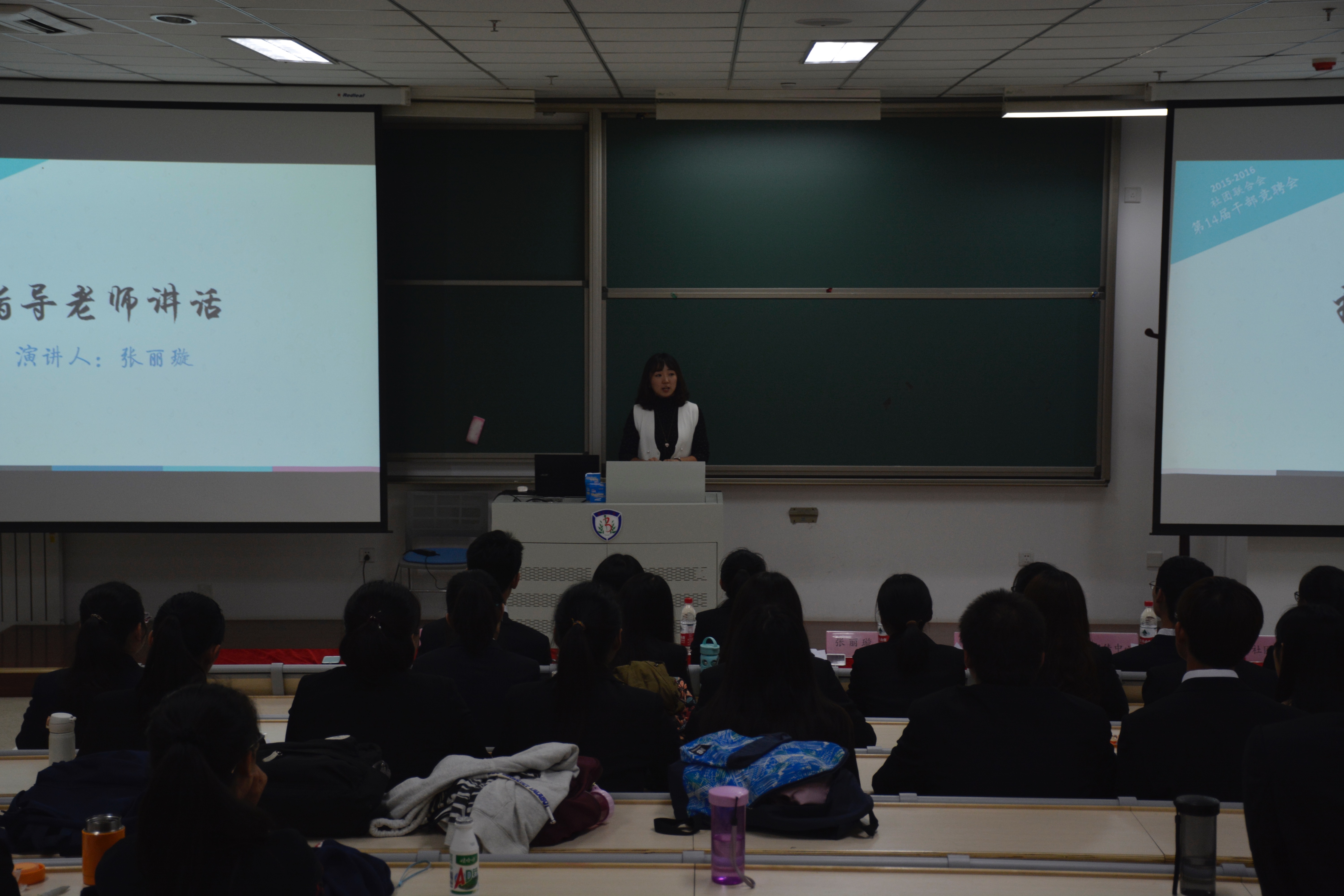 会议开始后,首先由担任社联指导老师的张丽璇老师发表讲话,一是肯定了第十三届社联干部的工作,对他们的表现加以赞赏;并对第十四届干部提出一系列要求和建议,对新一学年度社联和社团的工作寄予极大的期望。二是对社联整体组织结构提出建议,说明今年社联将会有所改革,日后的工作会与学生会紧密合作,使社联的资源与学生会的平台强强联手,以促进双方的更好发展。最后,鼓励参加竞聘的同学们能够展现自己最精彩的一面。指导老师平易近人的讲话打动了每一位同学的心,使大家都信心倍增,更加热情高涨。