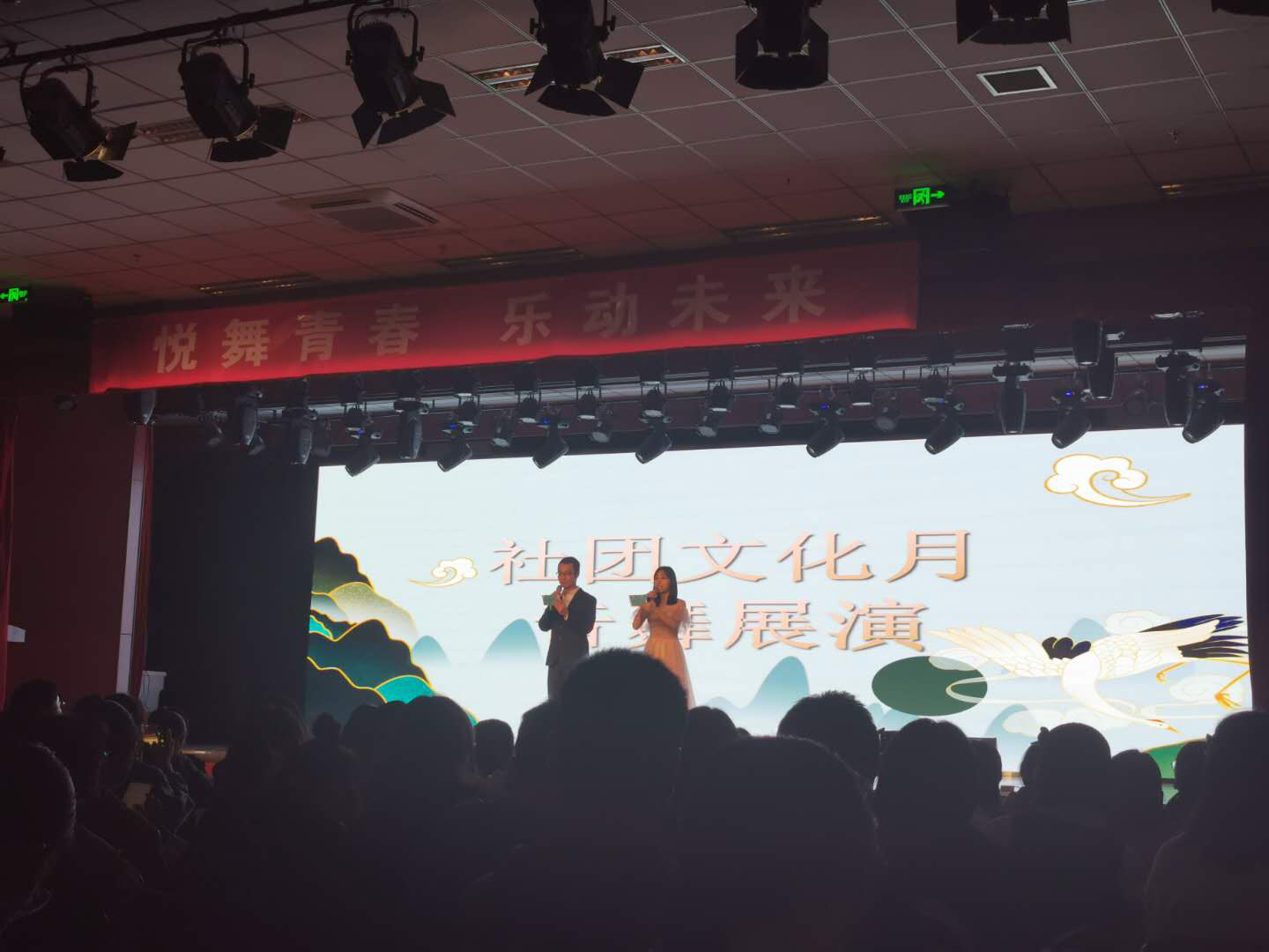 30日晚六点,音舞展演正式开始。首先由节目主持人进行开场,展演以叮当街舞社动感活力的舞蹈《Tinkle Twenty》拉开帷幕。接下来是叮当街舞社的《Stay Tonight》《Wannabe》,表演者以轻盈曼妙的舞姿配合优美动人的旋律,将观众吸引在其中不可自拔。紧接着是集音社的《宫野真守》歌曲表演以及西洋音乐协会的《小夜曲》等,悦耳的音乐响起,台下观众仿佛忘记了烦恼,一心沉浸在音乐当中。除此之外还有叮当街舞社激情四射的韩舞《Fake Love》、《Monster》。又双叒叕配音社《医仁至上》为我们讲述了张楚岚从不知学医为何到找到初心的故事,令台下的同学深受感染并更加坚定自己的初心和梦想。集音社的《男孩别哭》《someone you loved》等轻快活泼的现代流行乐让人心随律动,沉醉其中。最后由LALALAND舞社的《知否知否》作为压轴表演,现场掌声雷鸣。晚上八点左右,主持人宣布“悦舞青春、悦动未来”音舞展到此结束,本次活动圆满落幕。