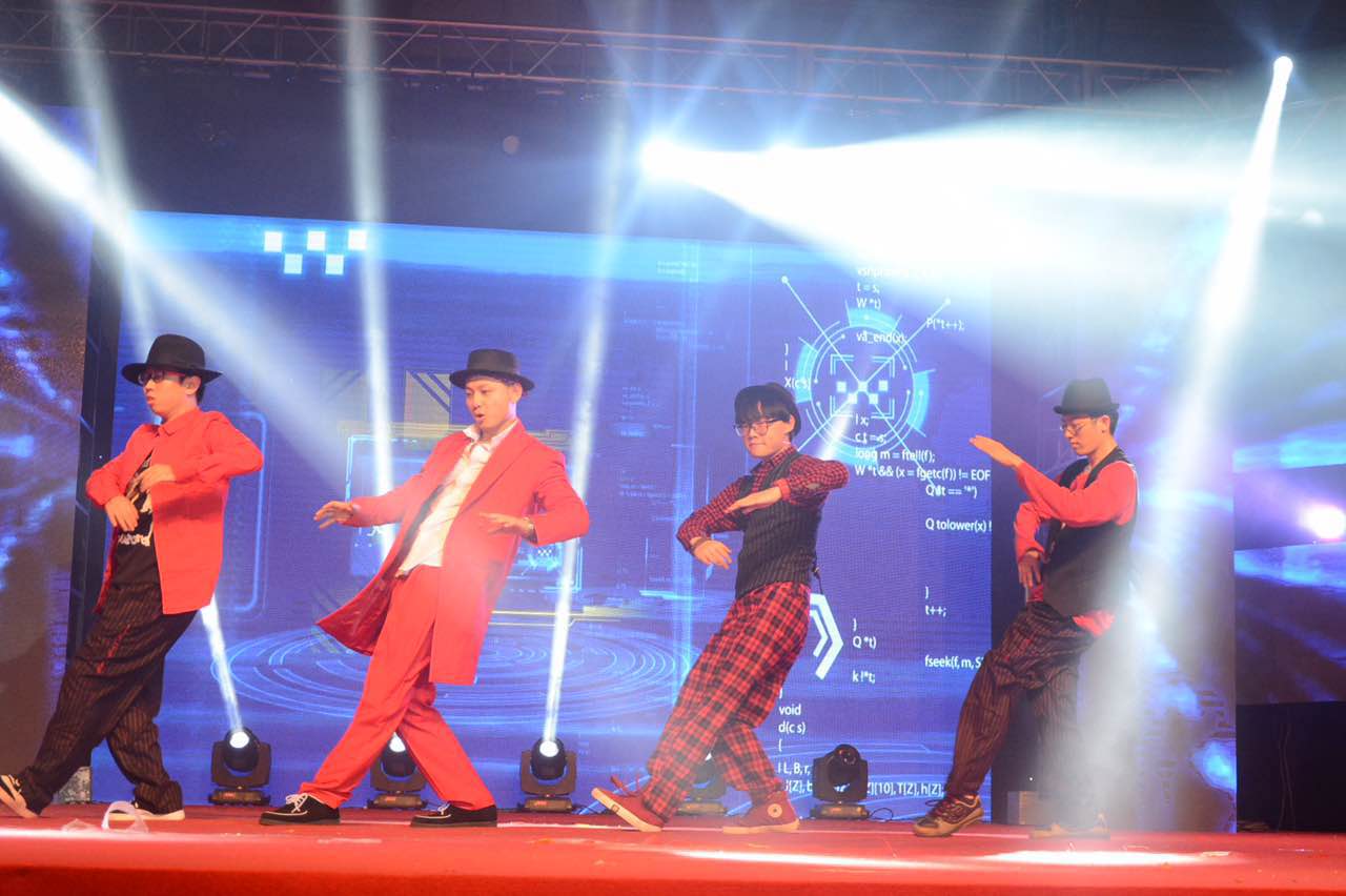 在体育教学部的竞技秀表演《魅力青春》中,第二篇章“收获•青春的成长”拉开帷幕,健美操、舞狮、太极、武术、足球等多样元素的融合,将我校体育健儿的竞技水平与活力全面展现;相声《90后的回忆》与话剧《一年级》由15级新生挑大梁,将生活的乐趣化为现场的欢声笑语,收获了无数掌声;研究生支教团带来的情景朗诵《青春•我在这里》将感动传达到每一个观众心中;特邀节目《挑战不可能》,机器人与《最强大脑》战队带来的精彩表演更是将晚会推进到了一个小高潮。