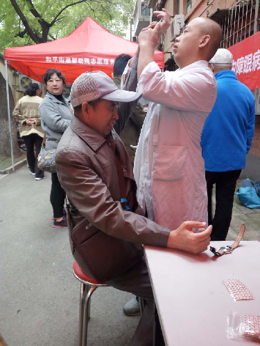 每月十四号为和平街街道的社区公益日,社会实践部提前联系好社区相关负责人,带着招募的志愿者,和其他服务社区的组织一起,参加社区的“温馨助残活动”。此次义诊主要针对社区老人开展中医四诊、推拿按摩、贴耳豆等健康保健服务。
