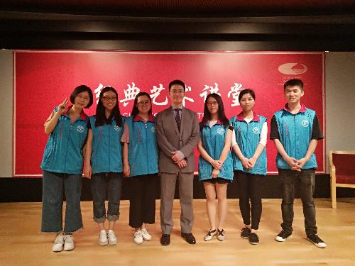上午9点,志愿者们到达国家大剧院,在登记进入后,根据国家大剧院文艺教育部杨念老师的安排对活动进行协助工作,包括在讲座开始前,摆放好会场座椅,对前来观看的观众进行检票与会场内的引导,在讲座开始后积极维护会场的秩序,在讲座结束后整理座椅与环境卫生,引导观众顺利离开会场等等。活动结束后,志愿者们与本次讲座的主讲人合影留念。