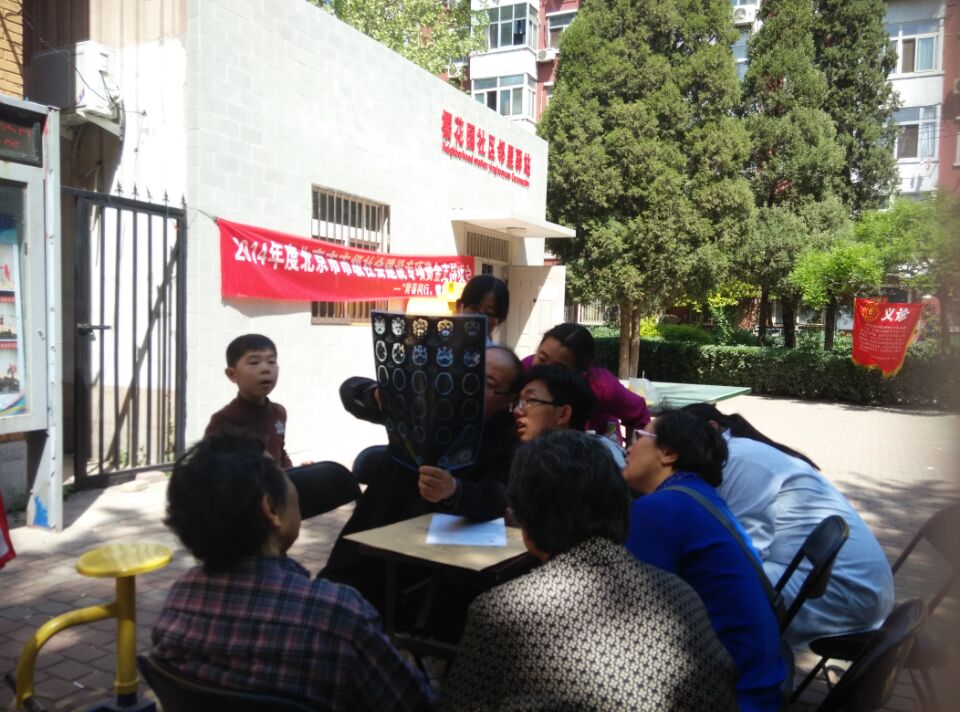 2015年4月25日上午,岐黄志愿者协会手诊分会在樱花园社区活动中心外为社区居民举办养生知识讲座以及推拿耳针手诊等志愿服务。指导老师侯中伟及5名志愿者共同组织并参与了本次活动。