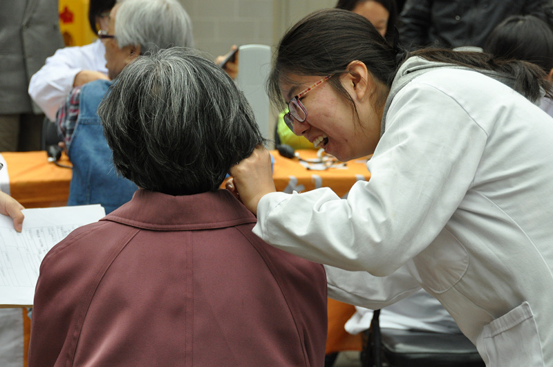 耳针协会的义诊活动给人最大的印象就是微笑。有人说微笑是全世界通用的语言。在樱花园社区,每周六的义诊活动,是耳针协会的每名志愿者为居民送去健康,送去欢乐的时候。