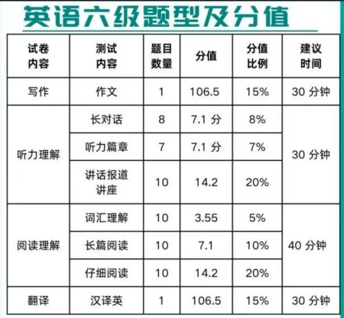 3. 阅读篇:建议从易到难,按分值占比分配时间,阅读理解>长篇阅读匹配>选词填空,抓住文章中的关键词,特别需要注意同义词替换。