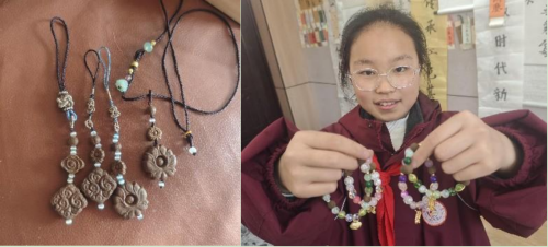 本次活动最终产出合格香丸240余粒、精美香牌75枚,其中包含学生自主设计的12种独创纹样。经过一周的阴干,香珠香牌已然成形,三位志愿者带领学生们打磨、制作香牌挂件以及香丸手串。