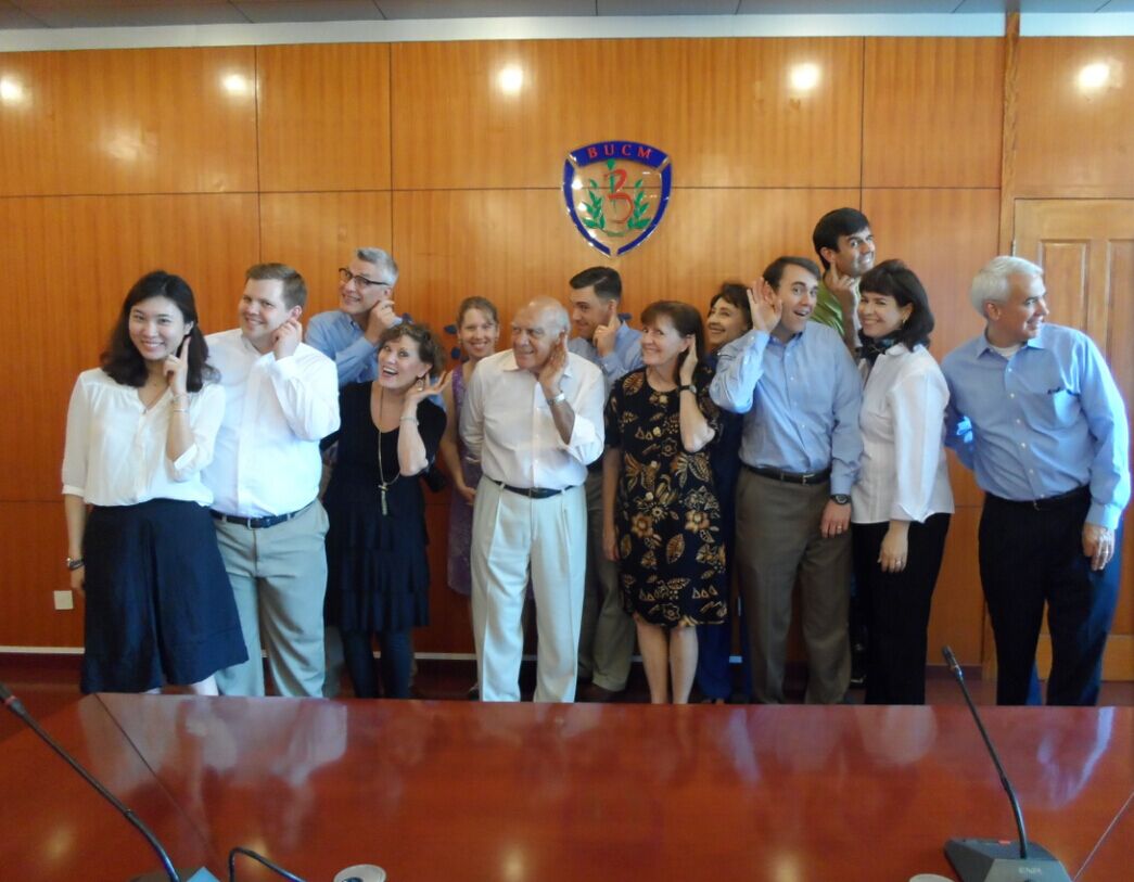 2015年5月25日上午,岐黄志愿者协会秘书处成功接待了美国高登大学校董事会一行人,并精心组织了一系列志愿交流活动。秘书处骨干负责组织活动,提前招募三名英语口语优秀的讲解人员,以及来自校耳针协会、手诊协会、推拿协会的部分志愿者参加了本次活动。