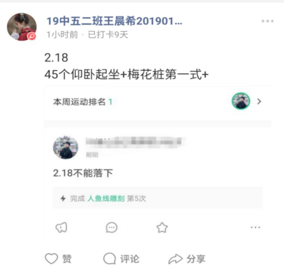 2月23日,历时14天的居家学习挑战于网课开课前夕结束。3月8日,居家作息挑战、居家运动挑战和居家家务挑战正式结束,历时28天的居家大作战活动圆满落下帷幕。此次活动共有1333人次参加、发布了26949篇打卡日记,其中共有188名同学打卡全勤,805名同学打卡率达到了60%。这次意义非凡的活动使同学们收获颇多,在活动中,大家养成了良好的生活习惯,勤学上进,锻炼身体,热爱劳动,弘扬家风,丰富了居家生活。