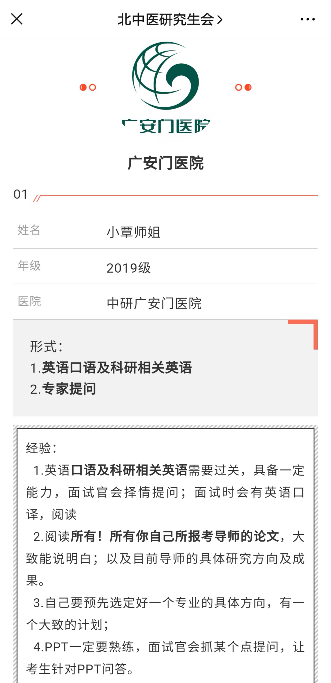 考博复试经验线上分享由博委会成员有序负责不同分工,分别邀请中医学院、针灸推拿学院、中日友好医院、西苑医院、广安门医院等各学院优秀博士生进行线上采访,针对考博复试的具体问题进行了耐心解答,排解困惑。以考博复试形式及经验为主,将交流过程中的内容精炼提取并整理为逻辑清晰、条理明确、重点突出的关键点一一列出,旨在为广大考博同学提供准备及建议,及时找到适合自己的复试复习方法投入备战,对考博复试有更深入的把握和了解。