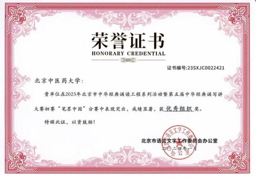 喜报!北中医荣获第五届中华经典诵写讲大赛初赛优秀组织奖